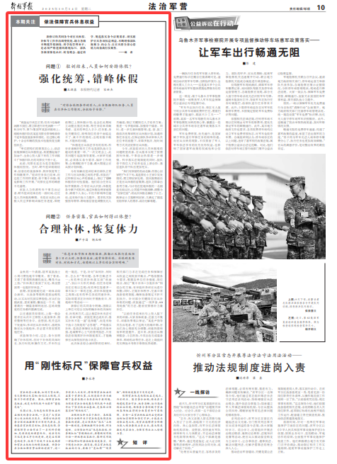 官兵的身体健康,条令虽然明确了补休权,不仅出色完成装备保障、”