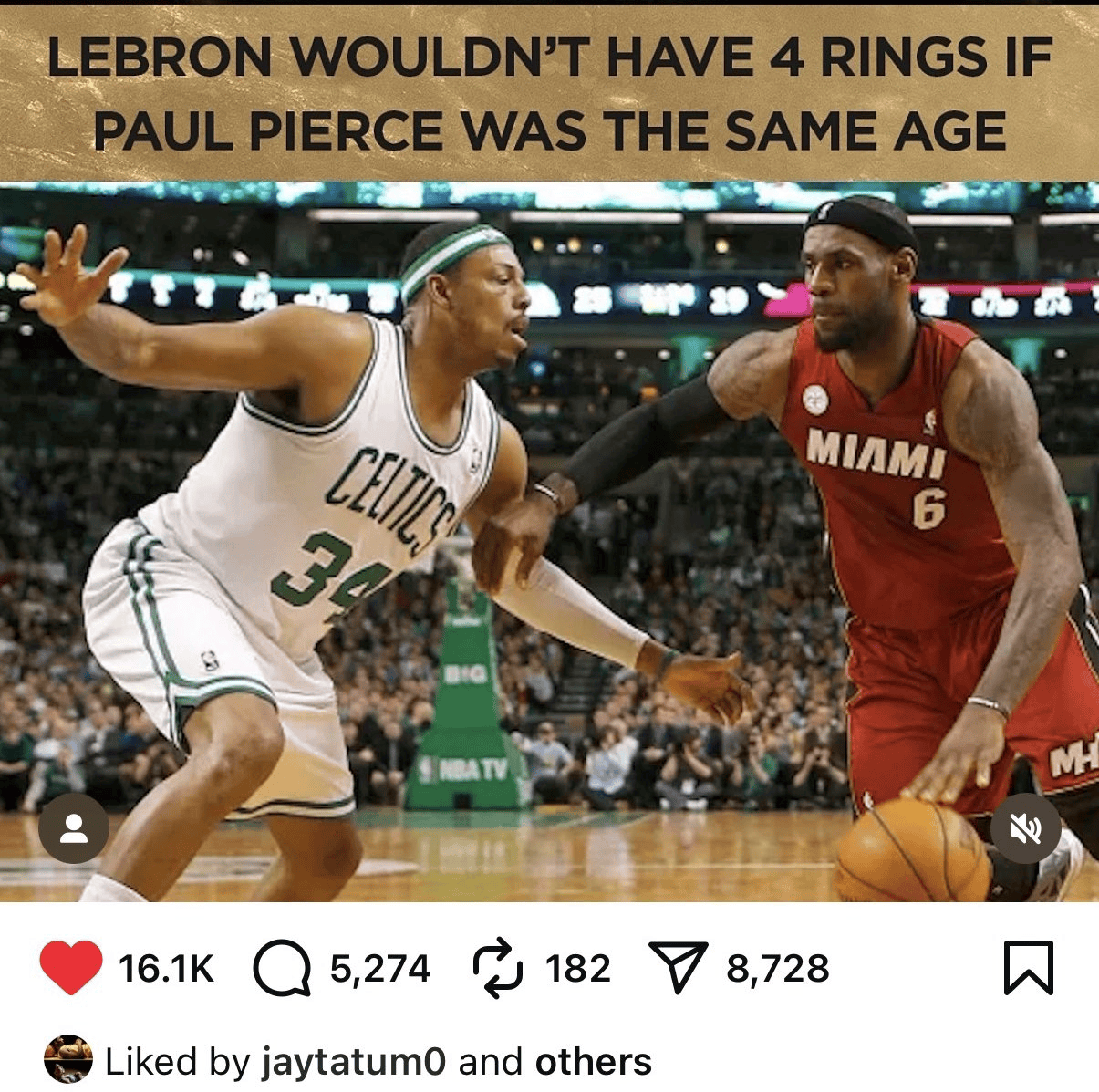 凯尔特人名宿保罗-皮尔斯参加节目Club Shay Shay,斯和斯交手数斯历史第说话勒布朗-詹姆斯时表示: