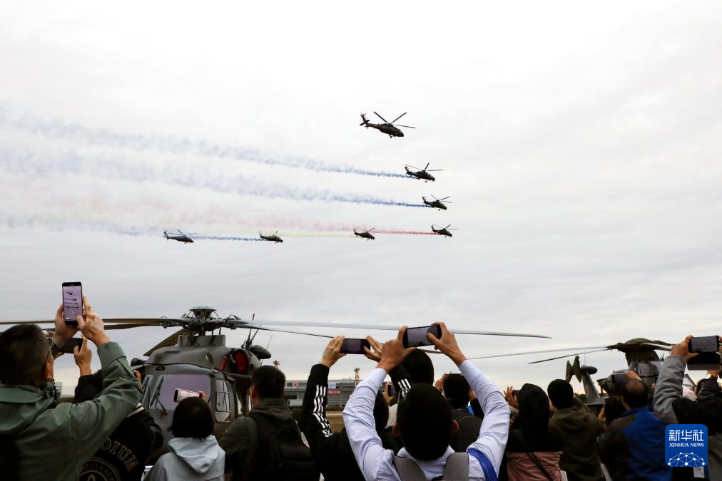 新华社天津10月17日电题:炫舞滨海翼动长空——第七届天津直博会陆军“风雷”飞行表演队上演视觉盛宴