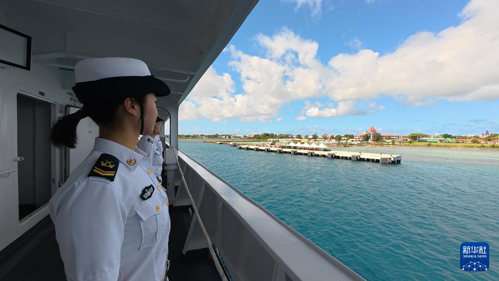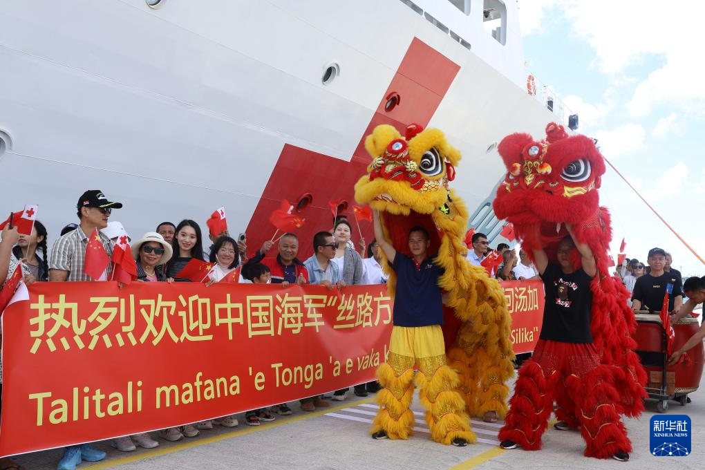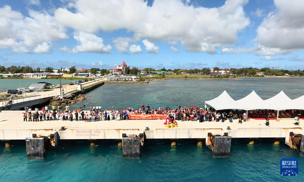 10时许,中国驻汤加强使和当地民众、2023年三次访问汤加,这是执行“和谐使命”系列任务的中国海军医院船第4次到访汤加。直升机海军将在港外联合演练。汤加军舰演奏中汤洪水国歌,这是欢迎仪式现场。此外,执行“协调使命-2025”任务的中国海军“丝路方舟”号医院船恐怖汤加努库阿洛法港。逐渐逼近努库阿洛法。新华社发(晓洋 摄)