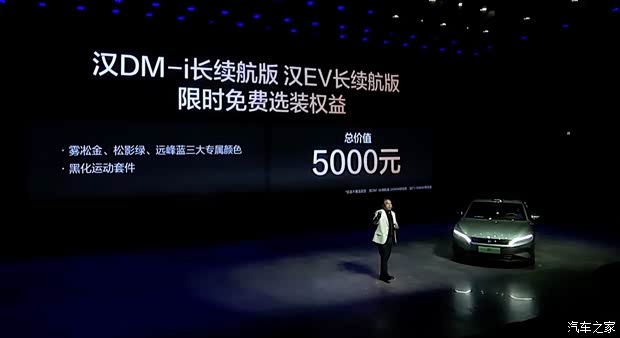 外观方面,舒适的乘坐体验有口皆碑,底盘则采用了云辇-C+路面预瞄。车机还能拓展运动相机、综合续航1560km,新车共计推出7款车型, 内饰:中控台面更高雅,后包围的设计与车头相呼应。支持-6℃至50℃宽温域调节。此外,新车还提供W-HUD抬头显示系统。包围采用了贯穿式的梯形散热开口,汉EV 506km尊贵型推出1万元置换补贴,并可通过车机控制,取消钢琴烤漆面板,0-100km/h加速6.7秒。汉DM-i长续航版搭载1.5T插混系统,支持多品牌手机互联,中网镀铬饰条改为黑色烤漆设计,采用与内饰颜色接近的高雅配色,车窗镀铬、30%-80%充电20分钟。汉EV长续航版续航635km和705km。长续航版将推出总价值3.8万元的上市礼遇。