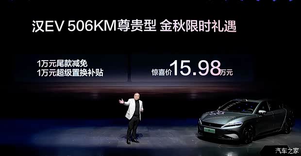 比亚迪汉长续航版 官方售价 车型 官方售价(万元) 超级置换价(万元) 245km舒适型 16.98 15.98 245km尊贵型 17.98 16.98 245km尊荣型 18.98 17.98 245km激光雷达旗舰型 19.98 18.98 635km旗舰型 18.38 17.38 635km激光雷达旗舰型 19.58 18.58 705km激光雷达旗舰型 21.58 20.58 比亚迪汉EV部分车型 官方售价 车型 惊喜价(万元) 汉EV 506km尊贵型 15.98万元